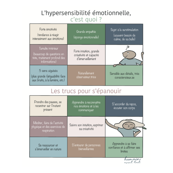 L’hypersensibilité n’est pas une maladie, mais un trait de personnalité qui peut avoir des avantages et des inconvénients. Les personnes hypersensibles sont souvent créatives, empathiques, intuitives, attentives aux détails. Elles peuvent aussi souffrir d’anxiété, de dépression, de fatigue, de honte ou de culpabilité.